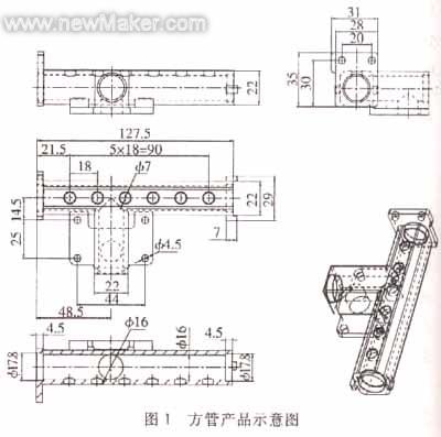 在產(chǎn)品開(kāi)發(fā)中,市場(chǎng)競(jìng)爭(zhēng)日益激烈,產(chǎn)品開(kāi)發(fā)周期的長(zhǎng)短和產(chǎn)品質(zhì)量的好壞是贏得市場(chǎng)的關(guān)鍵。因些也為模具制造業(yè)提出了新的要求:模具的高精度,最短的模具交貨期,模具的使用壽命以及模具結(jié)構(gòu)的適用性和高度自動(dòng)化。下面以方管產(chǎn)品的壓鑄模為例,從上述幾個(gè)方面來(lái)論述管型鑄件壓鑄模的設(shè)計(jì)及CNC加工。