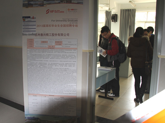 招聘職位囊括了壓鑄產品工程師、項目工程師、質量工程師、模具設計工程師、材料工程師等多個方向,主要面向2013屆上海大學材料科學與工程學院應屆本科及碩士畢業生招聘,得到了得到了上海大學學院領導及師生們的大力支持。上海大學材料科學與工程學院不僅為中華壓鑄網一行開設了招聘綠色通道,還準備了多間多媒體教室作為招聘室,多名在校大學生主動擔任志愿者為招聘企業服務。