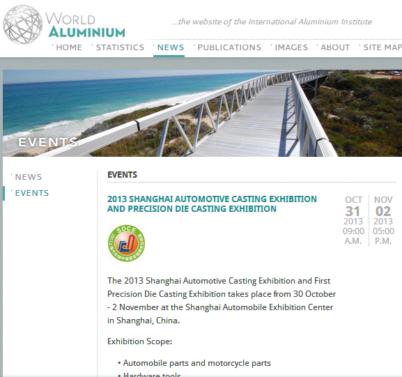 日前,2013上海汽車鑄件展暨首屆精密壓鑄展【SDCE2013】取得了國際鋁協的大力支持。在其官方網站,對展會進行了大力宣傳,也使得SDCE這個品牌在國際上建立了一定的知名度和美譽度。有名氣才有底氣,在國際這個大舞臺,我們可以自信的說,選擇我們的展會,您絕對不會失望。