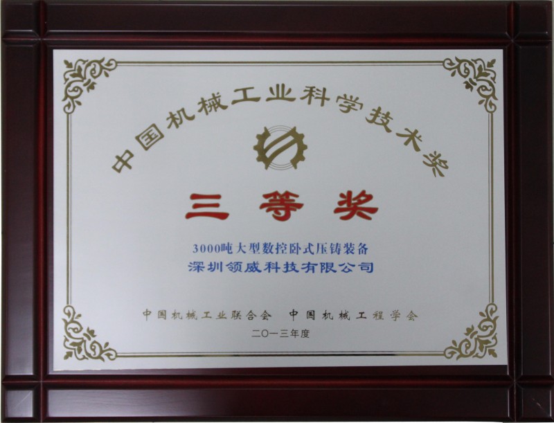 近期,中國機(jī)械工業(yè)科學(xué)技術(shù)獎(jiǎng)評審委員會(huì)聯(lián)合中國機(jī)械工業(yè)科學(xué)技術(shù)獎(jiǎng)管理委員會(huì),表彰了中國機(jī)械工業(yè)科學(xué)技術(shù)獎(jiǎng)獎(jiǎng)勵(lì)項(xiàng)目三百多項(xiàng)。深圳領(lǐng)威科技有限公司憑借融入了多項(xiàng)壓鑄技術(shù)創(chuàng)新成果的“3000噸大型數(shù)控臥式壓鑄裝備”榮獲“中國機(jī)械工業(yè)科學(xué)技術(shù)獎(jiǎng)三等獎(jiǎng)”。