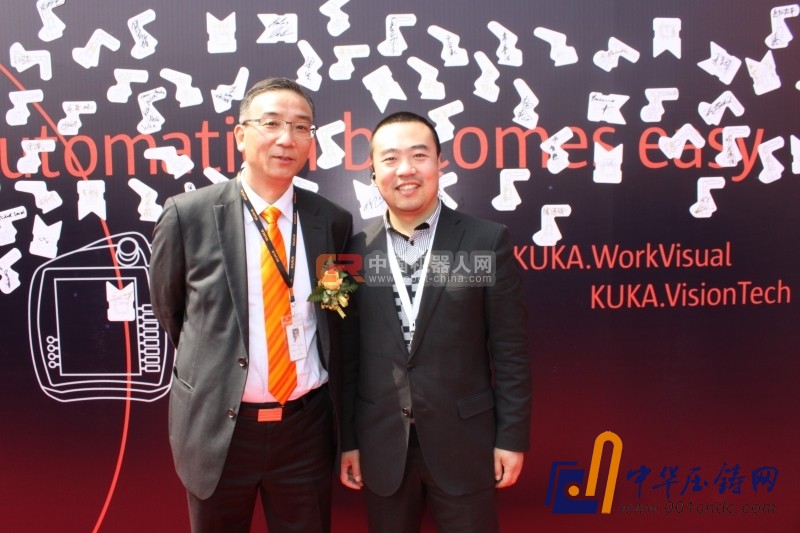 庫卡機器人中國首席執(zhí)行官孔兵與中國機器人網(wǎng)首席執(zhí)行官趙勇合影