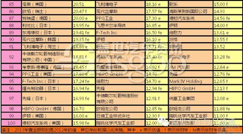 下表為近三年全球汽車零部件配套供應商百強名單: