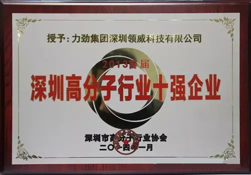 深圳領威科技有限公司被評為“深圳高分子行業10強企業”;