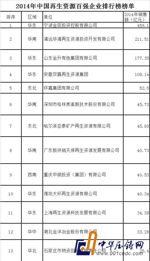 中國再生資源回收利用協會“2014年度行業企業經營狀況調查”已經結束.本年度共有400多家企業參與。根據各企業年度經營額排定的“2014年行業百強企業榜單”和“2014 年度再生資源百強企業經營狀況調查報告”于2015年5月20日發布。