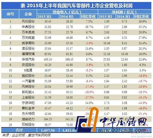 在二十家上市汽車零部件企業中,上半年凈利潤漲跌均半。