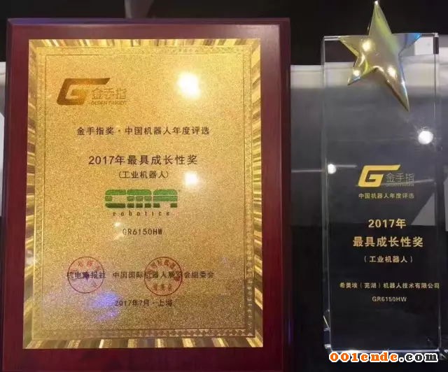 開幕首日,埃夫特與CMA再一次雙雙榮獲金手指獎,其中,埃夫特的ER7B-C10榮膺“2017年度最佳工業機器人獎”,CMA的GR6150HW噴涂機器人榮膺 “2017年最具成長性獎”,可喜可賀。